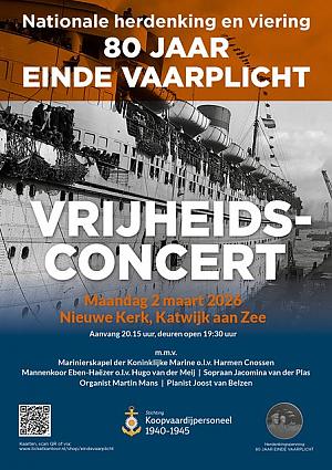 Op maandag 2 maart a.s. organiseert Stichting Koopvaardijpersoneel 1940-1945 in de Nieuwe Kerk te Katwijk een uniek Vrijheidsconcert. Dit concert markeert het begin van een periode waarin wordt stilgestaan bij de opheffing van de vaarplicht op 2 maart 1946, precies 80 jaar geleden. De vaarplicht, ingesteld in 1940, verplichte iedere zeeman tussen de 16 en 60 jaar te blijven varen tot een half jaar na de oorlog. Pas tien maanden na de bevrijding van Nederland en precies een half jaar na het definitieve einde van de Tweede Wereldoorlog kwam daar eindelijk een einde aan. Tegelijkertijd kregen de rederijen de beschikking over hun schepen terug.
