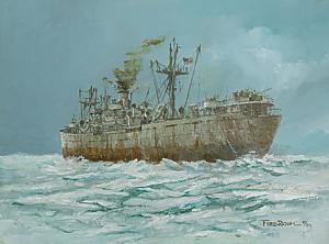 Fred Boom, in 1938 in Koog aan de Zaan geboren, is afkomstig uit een maritieme familie. Zijn opa Boom was varensgezel en de andere opa was scheepsbouwer. Er werd dus altijd over boten gesproken. Op 16 jarige leeftijd gaat hij als lichtmatroos voor het eerst naar zee en in 1957 naar de Kweekschool voor Scheepswerktuigkundigen in Amsterdam. In 1959 treedt hij als scheepswerktuigkundige in dienst bij de Koninklijke Nederlandse Stoomboot Maatschappij (KNSM). 11 jaar vaart hij bij deze maatschappij op zowel vracht- als passagiersschepen en ziet een groot gedeelte van de wereld. Na zijn pensioen wijdt hij zich volledig op het tekenen en schilderen van hoofdzakelijk scheepsportretten en zee- en havengezichten en werkt in zowel olieverf als aquarel/gouache techniek. Fred Boom, autodidact, geldt binnen de hedendaagse maritieme schilderkunst als een gerespecteerde, kundige, inspirerende, praktijkgerichte en kleurrijke zeeschilder. Hij is o.a. lid van Koninklijk College Zeemanshoop te Amsterdam.