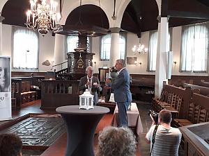 Afgelopen week werd in de historische Laurentiuskerk in Rijnsburg het eerste exemplaar overhandigd aan burgemeester Visser van Rijnsburg en Katwijk.